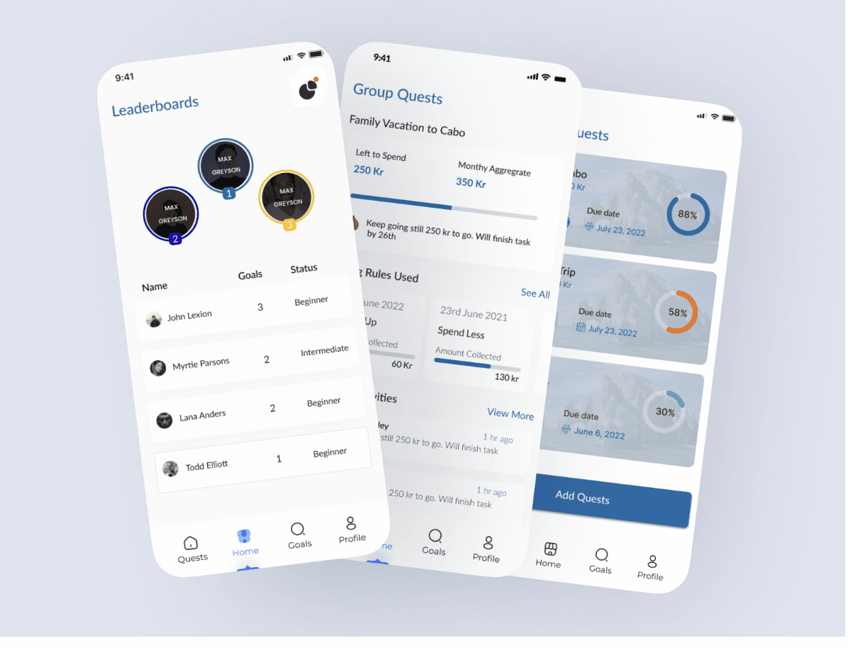 Leaderboards comparing savings progress